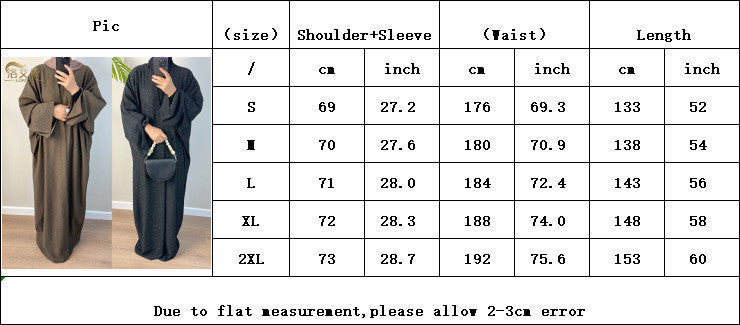 Embrace cozy elegance this season with this Thickened Autumn/Winter Cardigan Coat, designed for women who value modest fashion with comfort and style. Inspired by Turkish and Middle-East design, it features a warm, thick fabric that holds its shape while providing graceful coverage. The long silhouette and cardigan-style front make it easy to layer over dresses, abayas or trousers for cooler weather. Finished in neutral tones that reflect your modern modest wardrobe, it’s perfect for outings, relaxed layers or transitional seasons. Pair it with a soft hijab, boots and minimalist accessories for a refined, comfortable look.