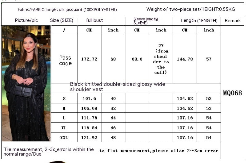 Transform your modest wardrobe with this Shiny Figured Cloth Two-Piece Abaya Set, designed for women who cherish both full coverage and subtle glamour. The set includes a flowing black robe crafted from a lustrous, figured-texture fabric that catches the light while remaining elegantly modest, paired with a coordinating under-layer dress or skirt. With long sleeves and a floor-length silhouette, it offers graceful full-coverage, making it ideal for both special occasions and refined daily wear. The breathable material ensures comfortable movement and ease of styling. Pair with a soft hijab and minimalist accessories for a polished, confident look.